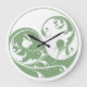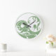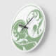 Grünes Muster und Weißes Yin & Yang Große Wanduhr