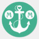 Kelly-grüne und weiße Monogramm-Aufkleber mit Herzanker.