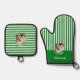 Grünes Oberteil mit weißen Streifen Ofenhandschuh & Topflappen-Set