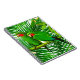 Notebook in einer Illustration eines liebevollen Paares von grünen und roten Papageien auf einer Bambushalle vor dem Hintergrund von Dschungelblättern