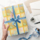 Digitales Design in Grüntöne, Gelb und Blues kombiniert für ein hübsches Packpapier, um ein besonderes Geschenk für jeden Anlass zu verpacken.