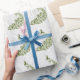 Wrap Geschenke für die Braut und Bräutigam mit einer Rolle von Green Peacock Leaf Vine Wedding Wrapping Papier. Das Wrapping Paper Design besticht durch einen hellgrauen Grunge und einen Hintergrund mit weißem Blatt Weinreben mit einem lebhaften grünen Pfau. Zusätzliche Hochzeitswaren und Geschenke sind mit diesem Design ebenfalls erhältlich.