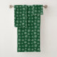 Ein Muster weißer Schneeflocken auf grünem Hintergrund.