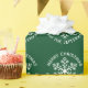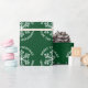 Ein gefliestes Muster einer weißen Schneeflocke auf grünem Hintergrund mit "Frohe Weihnachten" aus der Familie um sie herum.