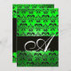 GRÜNES SCHWARZES DAMASK-MONOGRAMM, hell weiß Einladung