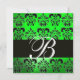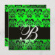 GRÜNES SCHWARZES DAMASK-MONOGRAMM, weiß Einladung