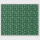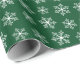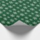 Ein Muster weißer Schneeflocken auf grünem Hintergrund.