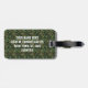 Dieser kundengerechte Camouflagemustergepäck-Umbauentwurf hat ein Metallsheriff-Abzeichen mit Raum, damit Sie Ihr Monogramm/Initialen oder anderen Text addieren. Die Tarnung ist in den grünen Abstufungen und im Braun. Es gibt auch ein Feld, damit Sie Ihren Namen u. Adresse der Rückseite hinzufügen (oder den Beispieltext einfach löschen). Es ist ein großer Entwurf für eine Person im Militär, ein Veteran, eine Frau oder ein Mann in der Gesetzesvollstreckung, ein Jäger oder sogar ein Fan populärer Fernsehshows mit gehenden Zombies/absolut.