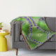Das abstrakte, grüne und lila Kunstwerk von ZoeSPEAK auf diesem Throw Blanket entstand aus einem Originalfoto eines Blattes auf einer Kalanchoe-Pflanze. Die kleinen Teile am Rande des Blattes (in dieser Abstraktion lila gedrängt) fallen ab und werden zu neuen Pflanze.