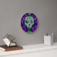 Grünes und Lila glühendes Zuckerschädel Halloween Runde Wanduhr