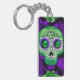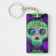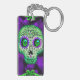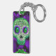 Grünes und Lila glühendes Zuckerschädel Halloween Schlüsselanhänger