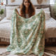 Grünes Vintage-Blumenmuster Fleecedecke