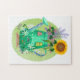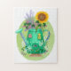 Grünes Wasser Hütte und Sonnenblumen Puzzle