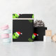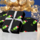 Grünes Weihnachtsgeschenk des Weihnachtsmannes. Grüne Alien Kopf mit einer Weihnachtsmannmütze Geschenkpackung personalisiert mit Sondertext. Das schöne schwarze Geschenkpapier für Holiday Geschenke. Extraterrestrial Life Space Cartoon Illustration für Kinder und Erwachsene. Benutzerdefinierter Hintergrund