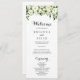 Dieses weiße, im Herbst blumenreiche Programm ist perfekt für eine rustikale Hochzeit. Das Design besticht durch elegante, weiße, Aquarellbäume mit grünem Blattwerk.