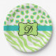Grünes weißes Zebra-Leopard-Monogramm Pappteller