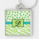 Grünes weißes Zebra-Leopard-Monogramm Schlüsselanhänger