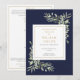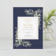 Eine elegante moderne marineblaue und goldene personalisierte botanische Aquarellanlage, um das Beerdigungsdenkmal zu begehen. Entwickelt von Thisisnotme©