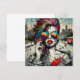 Einzigartige ai-Kunst, die eine schöne moderne Frau mit rosa und blauen Haaren darstellt, Sonnenbrille mit einem Spiegelbild der Stadt, städtischer Hintergrund postapokalyptische Villen.