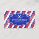 Grunge Blue & Red Stripes Schere Barbershop Visitenkarte
