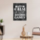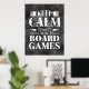 Spielen Sie mit diesem coolen Poster für das Spielzimmer-Dekor! Dieses maßgeschneiderte Gaming-Poster bietet "behalt Ruhe und spiele Brettspiele" Zitat in gemischter Typografie mit grauem grunem Hintergrund. Es gibt viele Plakatgrößen mit zusätzlichen Hängeoptionen.