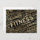 Klassische Fitness Postkarte mit grauem Text.