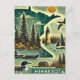 Minnesota, das Land der 10.000 Seen, ist in dieser geruhsamen Darstellung im Stile des Grundes schön vertreten. Die berühmten Szenen des Staat werden lebendig: das ruhige Wasser des Kanugebietes von Boundary Waters, die Löwen, die auf ruhigen Seen schwimmen, und der markante Leuchtturm von Split Rock mit Blick auf die zerklüfteten Ufer des Superior-Sees. Hochwertige Kiefernwälder und reiche erdfarbene Töne verleihen der Komposition eine Tiefe, während beängstigende Texturen ein Gefühl von rustikalem Charme und zeitloser Schönheit hervorrufen. Dieses künstlerische Design spiegelt die Essenz der Naturlandschaften von Minnesota wider und verbindet die wilde Wildnis mit ruhigen Wasserwegen zu einem wirklich inspirierend Porträt.