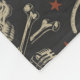 Grunge Stilschädel, Querknochen und verschiedene Musikinstrumente auf schwarzem Hintergrund, nahtlos wiederholtes Muster