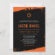 Moderne Grunge Bar Mitzvah-Einladungen mit kühlem Schwarz-Orange-Design. Feiern Sie stilvoll mit dieser einzigartigen Einladung. Sie können den Stil des Schriftartes mit den Online-Vorlagentools leicht ändern.