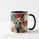 Diese patriotische Tasse zeigt ein Aquarellporträt eines majestätischen belgischen Malinois-Hundes, der vor einem Hintergrund der US-Flagge aufgestellt wurde. Sie können Text hinzufügen, wenn Sie möchten, indem Sie ihn anpassen.