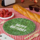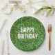 Taube auf grünem Gras mit Klee zum Geburtstag.