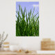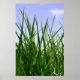 Dieses fotografische Bild ist ein Bug-Blick auf grünes Gras mit blauem Himmel im Hintergrund.
