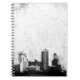 Grungy Stadthintergrund in Schwarzweiss Notizblock