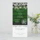 Eine ganzheitliche Hochzeitseinladung mit Aquarellwald und lila Grünpflanzen, hübschen Saitenleuchten und Maurerkrügen auf einem smaragdgrünen rustikalen Holzpaneelenboden. Die Einladung enthält eine RSVP-Karte, die abgeschnitten werden kann, und Informationen zu den Gästen. Entwickelt von Thisisnotme©
