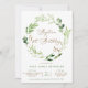 Eine geschlechtsneutrale Einladung für die Taufe und den 1. Geburtstag Ihres Kleinen. Dieses Design zeichnet sich durch einen Aquarellkranz von grünen Blätter und Beeren aus, mit dem "Taufe + 1. Geburtstag" in einem braunen, modernen kalligraphischen Schriftart. Auf der Rückseite befindet sich ein braunes, wasserfarbenes Holzmuster.