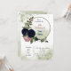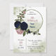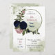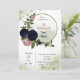 Romantische Rosa- und Marineblumen und grüne Blätter botanischer Kranz Geburtstagsfeier