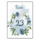 elegante, anpassbare Tischnummer-Karte Blau-Weiß-Blume mit einigen grünen Blätter Gold Kranz-Tischnummer-Karte