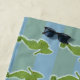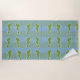Grüne Meerpferde und Streifen im Hintergrund auf einem Strandtuch.