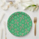 Einige Teller aus grünem Papier mit klassischem Motiv aus Bonbons und Schneeflocken. Dieses gleiche Design ist auch in blau und rosa erhältlich. © ArianeC Illustrations-Alle Rechte vorbehalten