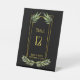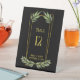 Grünpflanzen auf einem Goldrahmen-Hochzeitstisch Sockelschild