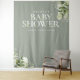 Eine elegante Baby Dusche Foto Kulisse mit moderner Typografie und hübschem botanischem Grün auf geschlechtsneutralem, schlängelgrünen Hintergrund. Entwickelt von Thisisnotme©