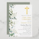 Erste Heilige Kommunion mit einem goldenen Kruzifix und Eukalyptus. Bereit für Personalisierung.