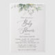Mit dieser charmanten Babydusche laden Sie Freunde und Familie in Stil und Set zu einem erlebnisreichen Tag ein. Das Design umfasst Eukalyptus-Blätter und Grünpflanzen.