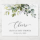 Fügen Sie Ihrer Babydusche mit diesen stilvollen und unvergesslichen Party eine persönliche Touch hinzu! Das Design umfasst Eukalyptus-Blätter und Grünpflanzen auf weißem Hintergrund.