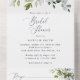 Mit dieser bezaubernden Brautdusche laden Sie Freunde und Familie in Stil und Set ein, den Ton für Ihren besonderen Tag zu erleben. Das Design umfasst Eukalyptus-Blätter und Grünpflanzen auf weißem Hintergrund.