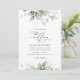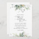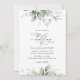 Mit dieser charmanten Hochzeitseinladung laden Sie Freunde und Familie in Stil und Set ein. Das Design umfasst Eukalyptus-Blätter und Grünpflanzen auf weißem Hintergrund.