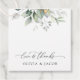 Fügen Sie Ihrer Hochzeitsfeier eine persönliche Touch mit diesen stilvollen und unvergesslichen Party hinzu! Das Design umfasst Eukalyptus-Blätter und Grünpflanzen auf weißem Hintergrund.