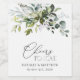 Fügen Sie Ihrer Hochzeitsfeier eine persönliche Touch mit diesen stilvollen und unvergesslichen Party hinzu! Das Design umfasst Eukalyptus-Blätter und Grünpflanzen auf weißem Hintergrund.