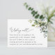 Vervollständigen Sie Ihre Hochzeitssaison mit dieser stilvollen Wunschkarte. Das Design umfasst Eukalyptus-Blätter und Grünpflanzen auf weißem Hintergrund.
