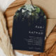 Grünpflanzen und Goldleaf | Dunkle Navy-Hochzeitsa Einladung